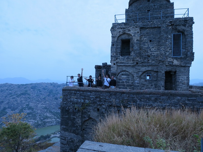 インドでハイキングをしました、「ジンジー城」です山頂に拝殿、