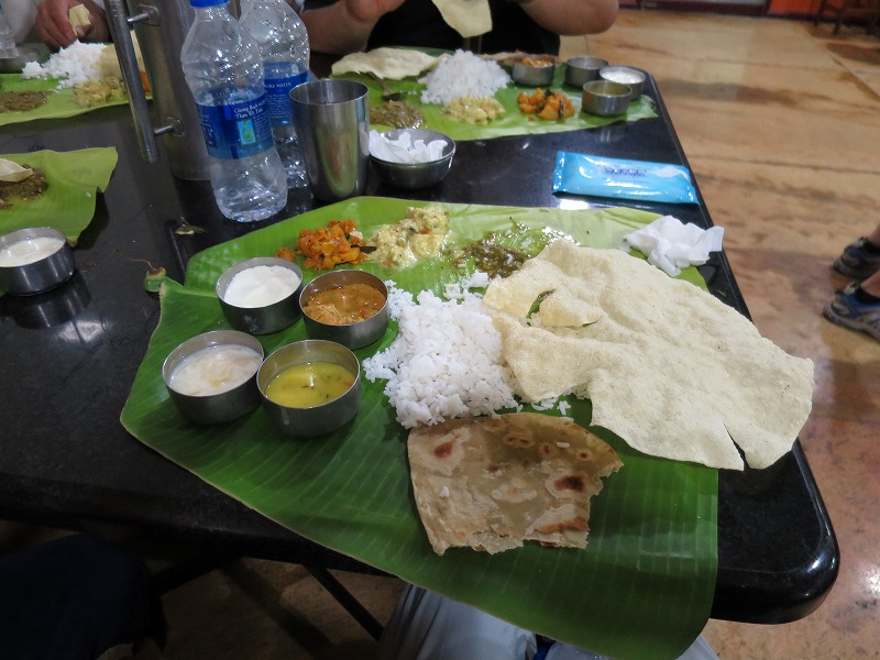 こちらは、ランチにてバナナの葉の上にご飯とカレー、ヨーグルト、ナンが配られ右手だけで食べました。