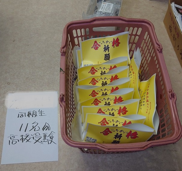 合格祈願石のサイコロ、石坂地区の卒業生へ